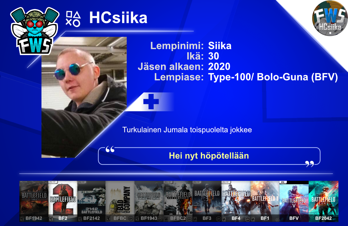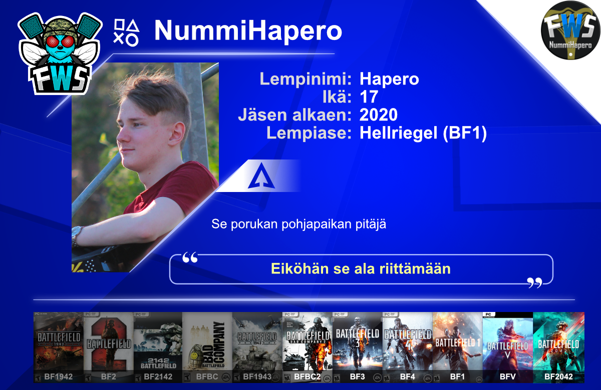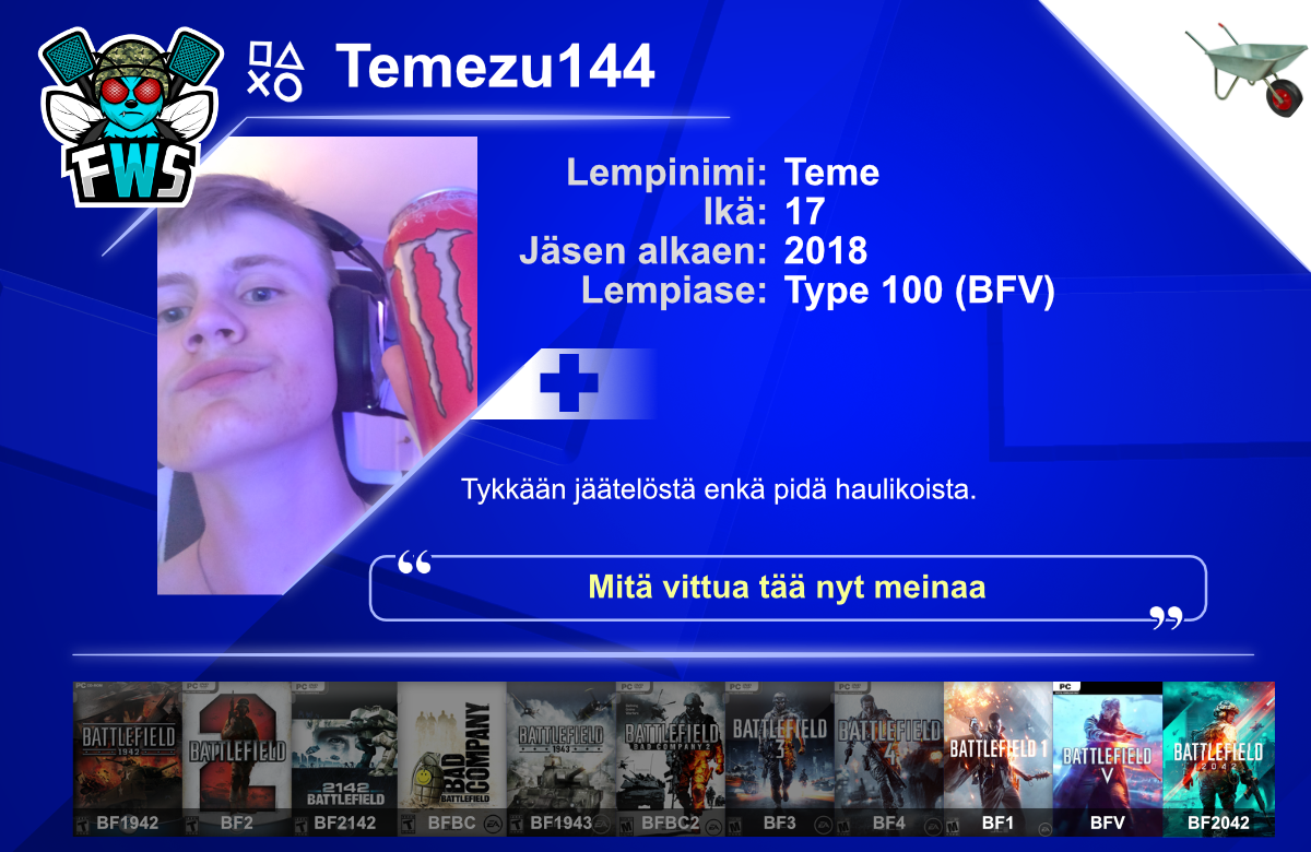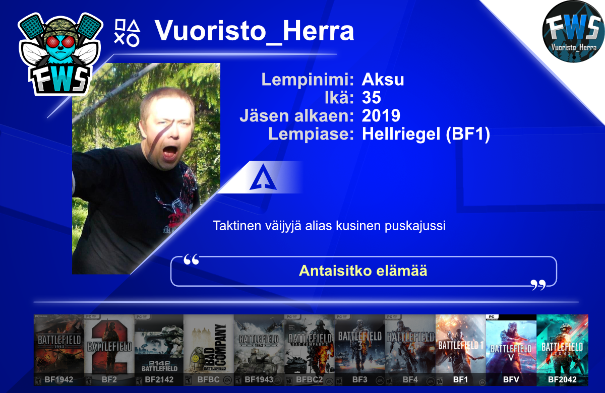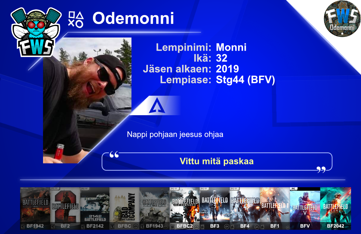 Mikäli mielit jäseneksi, niin pyydä kamuksi ja pelaa FWS jäsenten kanssa kanssa. Voit myös tulla jutustelemaan FWS Discordiin tai ottaa yhteyttä PSN kautta: