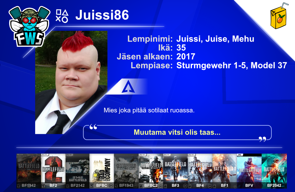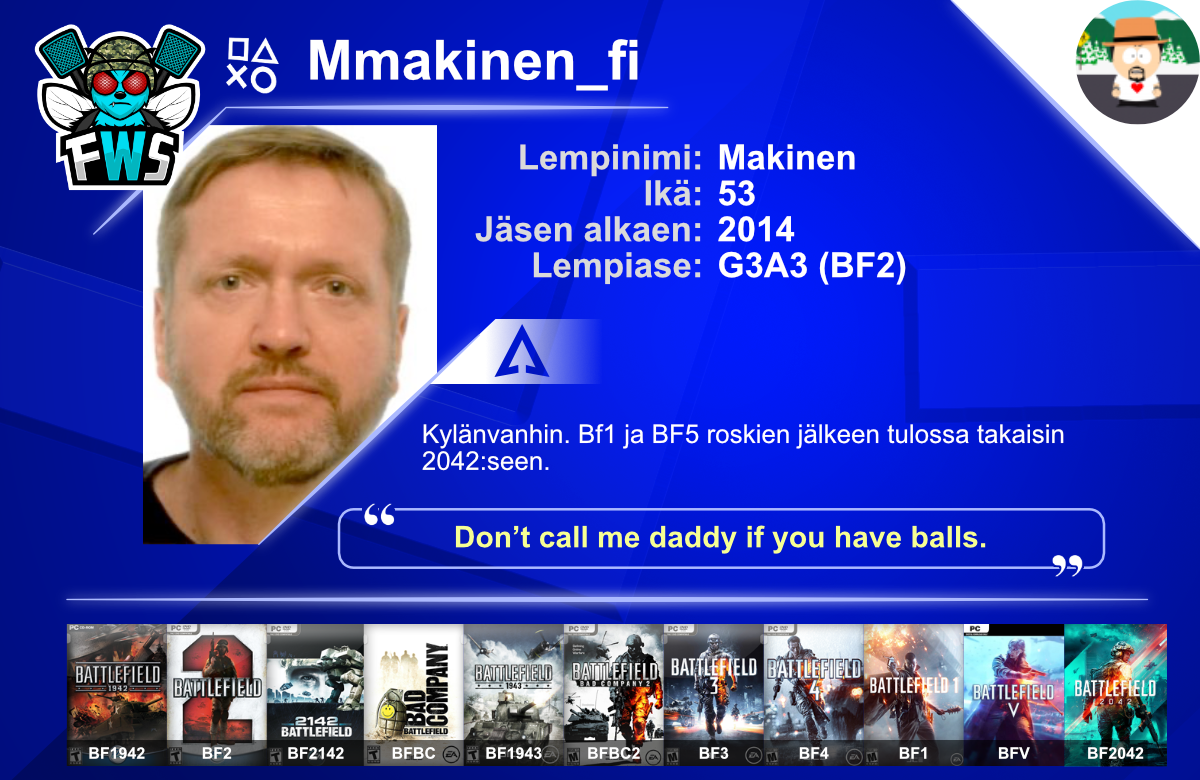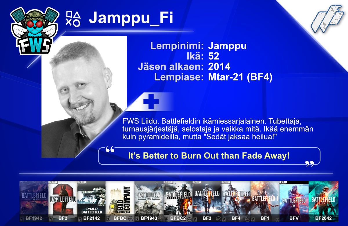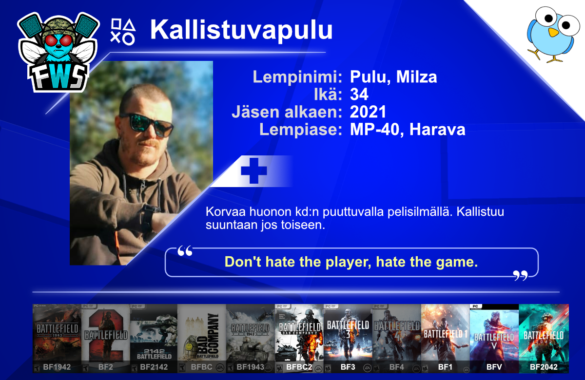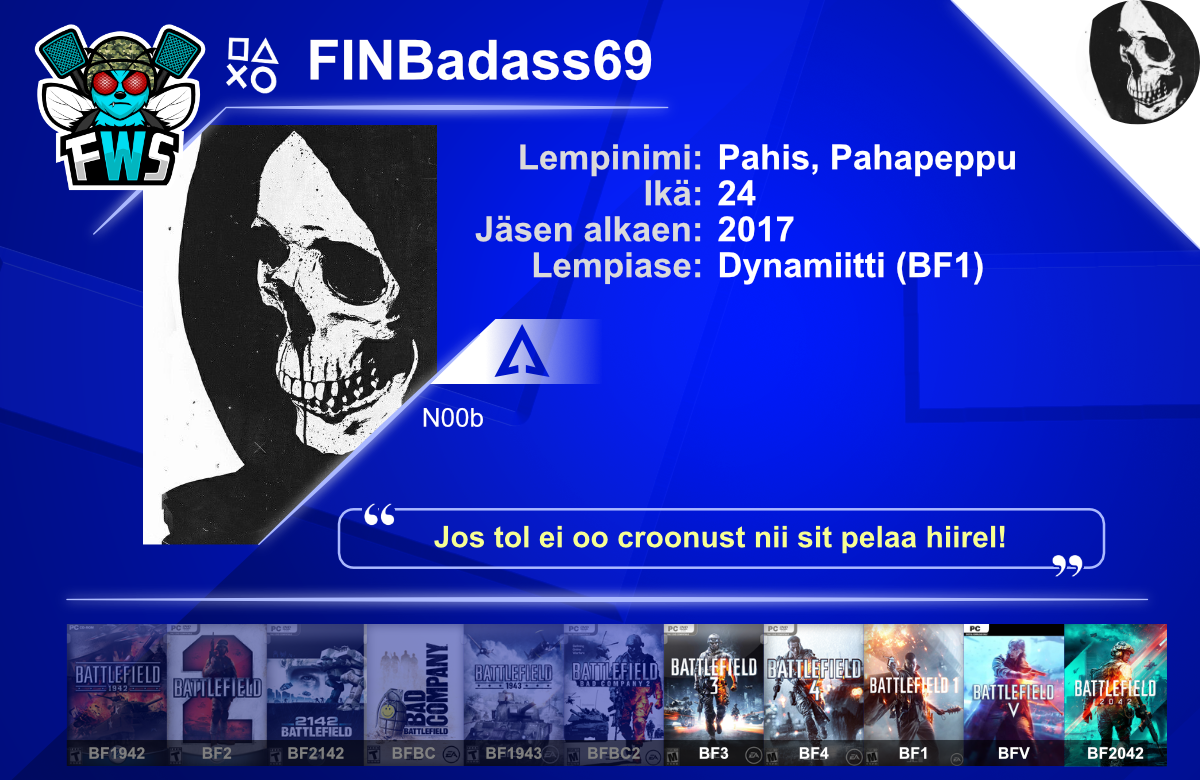 Mikäli mielit jäseneksi, niin pyydä kamuksi ja pelaa FWS jäsenten kanssa kanssa. Voit myös tulla jutustelemaan FWS Discordiin tai ottaa yhteyttä PSN kautta: